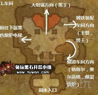 黑石铸造厂地图一览,相信有很多团队在初到黑石铸造厂的时候都是“遇到哪个BOSS我们就打哪个BOSS”的方式去开荒的。也有很多玩家在副本里迷路找不到各个BOSS所在的位置。那么看过下面的这个地图你就可以了解一下这个黑石铸造厂副本中各个BOSS所在的位置啦。