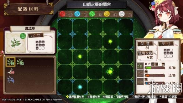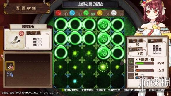通过以上很轻易的可以得出前期调和最主要的是让想出效果的素材吃到最大量的同色大光点!例如山狮之药你要出第一条HP回复微的更高阶段,你对应的魔法草(绿色)尽量要吃到最多大光点,如果是绿色的大光点则是最佳!