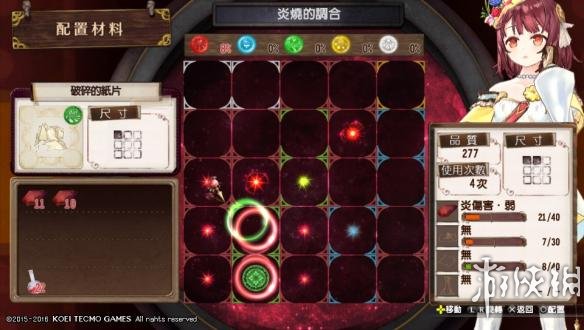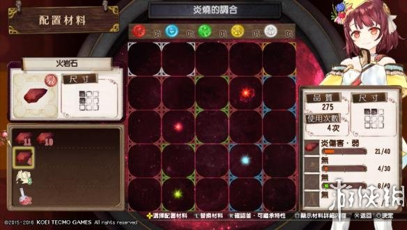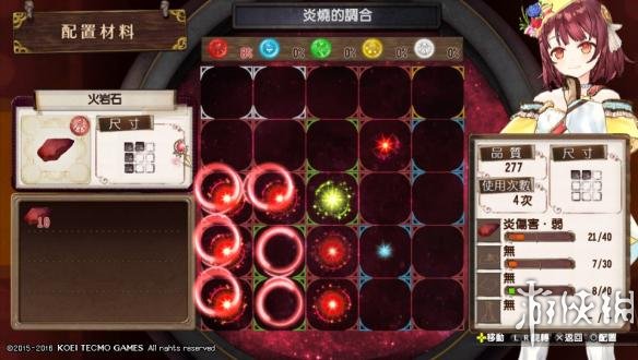 例如我只想要炎伤害那一条的效果,由于我选择的火岩石是11点和10点的类别值,初始就是21点,我未投入材料的情况下是21点。可以看出左下有比较多的红色框,于是,第一条效果对应的火岩石预估放在那个位置!