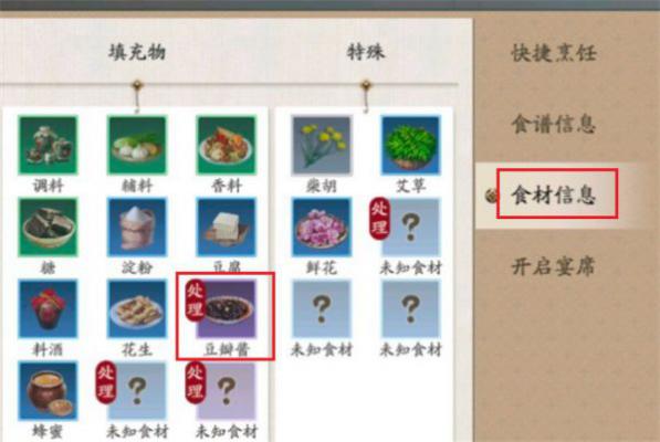 2、十级之后可以直接在食材商店购买,可以多买点屯着,后买需要用到很多豆瓣酱;