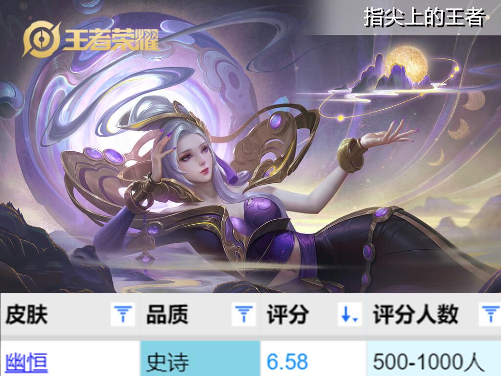 公认的优质皮肤,但评分却不是太高,这个是周年庆限定皮肤,玩家人手一个,因为是免费赠送的,起初刚刚上线时大家都觉得挺惊艳的,联动了传统的戏曲,突出一个文化传承,而分数不高的主要原因,大多都是来自高频触发的语音,喜欢戏曲的人还觉得不错,但是大多年轻人都不太喜欢,因此会觉得有些吵闹。