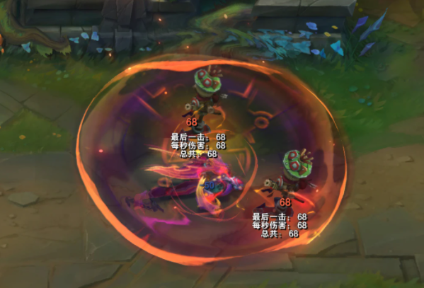 游戏中的特效仍然表现得很好。蓝色夹克搭配金色刀片,展现出都市时尚。特效方面,被动刻印,W功能积累力的特效,代数的中心位置,牛头元素随处可见。当技术命中敌人和E技术芒果土扩散时,都有电子火花和赛博朋克的虚化效果,炮艺戈在芒果土范围内也戴红色口罩。