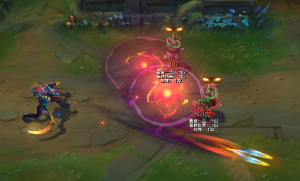 被动、Q技能击中对手时,与颜色相对应的羽毛和句子效果,与原皮整洁的刺客效果有很大差异,这就像魔法少女一样。