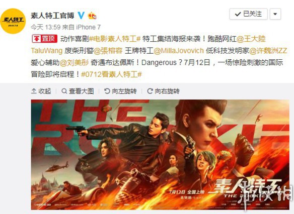 近日《素人特工》官博发布消息,由王大陆、米拉·乔沃维奇等演员出演的动作喜剧电影《素人特工》改档至7月12日上映(原定于7月5日上映),并发布了一张海报。