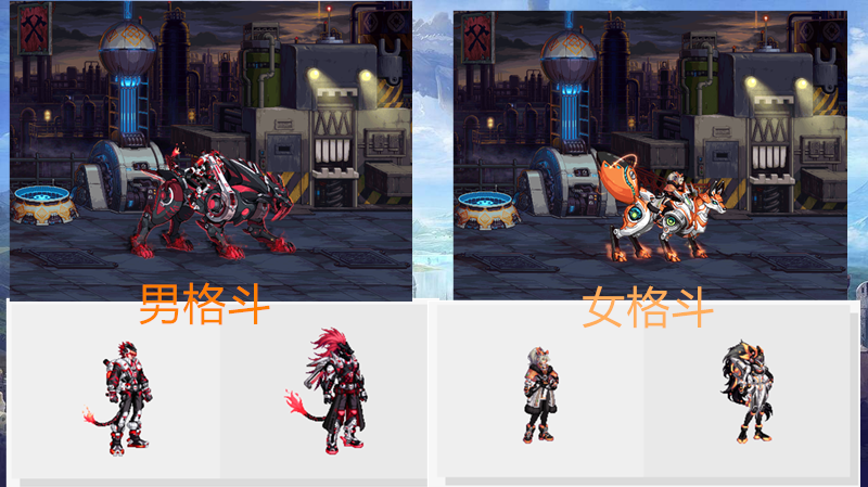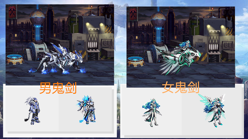 男鬼剑有一种“数码宝贝里的钢铁加鲁鲁的感觉”,一种机械兽,看起来的确很有科技感。