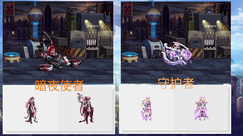 守护者则截然相反,虽然守护者整体上还是魔法型职业,但是她是未来穿梭到现在的位面的,所以科技感还是比较强的。另外,颜色的搭配和符合这个角色,并没有感觉到很突兀,这会在给玩家的感觉上就不同,更让人容易接受一些。