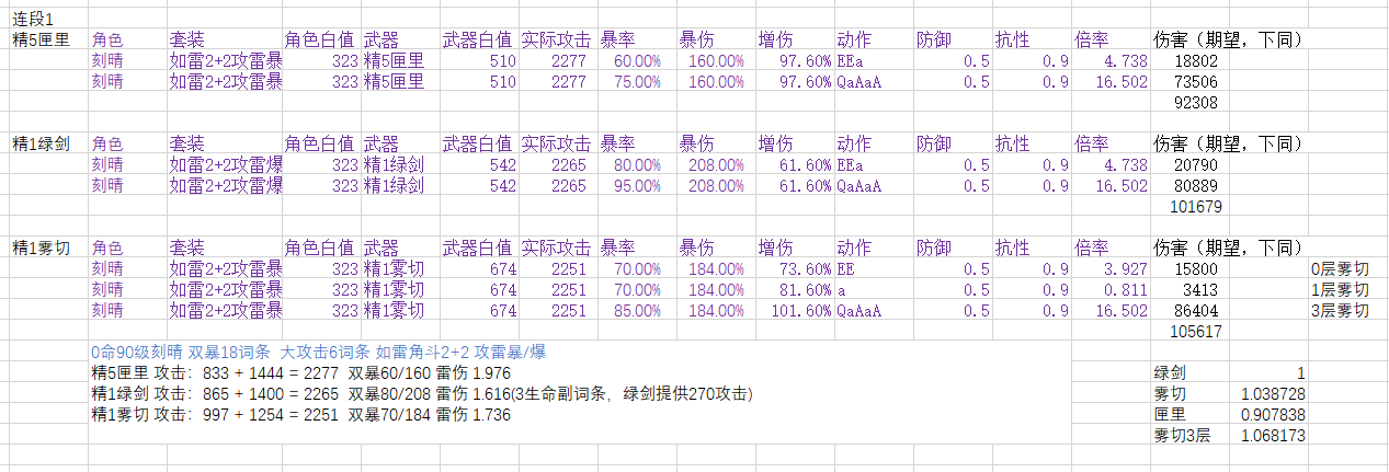 本帖可能会与很多人的之前游戏理解不合,我计算之前也没有预期到这种结果,在我之前印象中,雾切应该比绿剑强2%~5%左右,绿剑比匣里强10%左右。计算后将数据准确化,不作为抽卡建议。(之前算错了,现在计算完全符合之前印象)