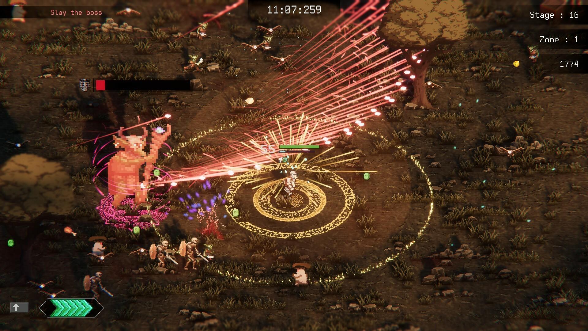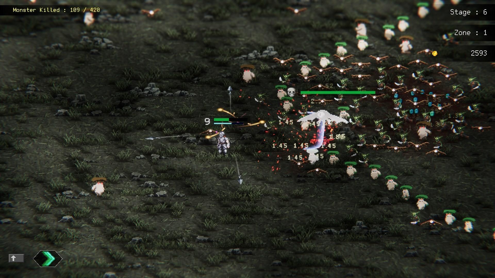游戏的故事很简单,玩家饰演一位拥有穿越异世界能力的救世主,不断穿梭各个世界击杀怪物,并拯救世界。整体游戏风格偏向于像素风设计,画面相对比较简约,甚至可以说是简陋。不过这样的设计,面对成百上千的怪物群而言刚刚好。不会因为界面存在太多元素,而导致玩家注意力分散。