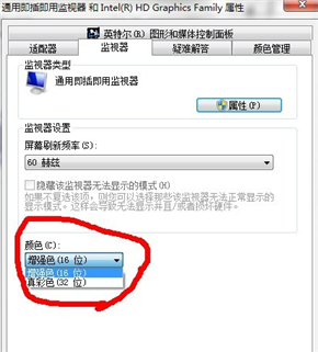 把颜色选项中的“真彩色(32位)”改为“增强色(16位)”,点击应用。注意,点击完应用之后,所有的边框的颜色都会改变,变成不透明的,不过不用怕,再点击确定即可。