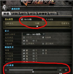 现在,可以登录上穿越火线,点击游戏设置,设置如下图所示,亮度不用调太光,效果会不佳的,亮度调整为50左右即可。