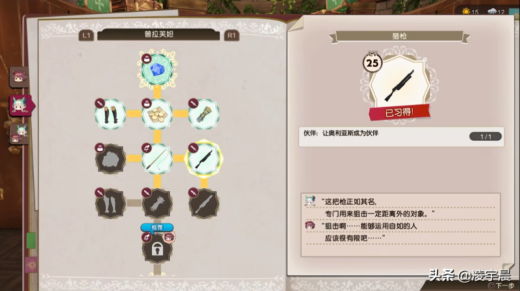不过在配方解锁条件上倒是有不小的变动,尽管本作依然可以在采集或者探索过程中解锁新配方,但是本作中加入了明确的解锁要求,例如采集到指定的素材或者前往指定位置探索才能解锁对应的配方。这样的改动虽然可以让玩家更明确地了解到新配方的获取方法,但同样也损失了一部分探索的惊喜,同时本作中还特意将苏菲和普拉芙妲的配方进行分隔。双方的炼金等级不共享的情况下,为了在后期解锁的二重调和中能更好地利用协力技能,在养成方面也显得更肝。