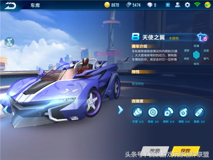 在《QQ飞车手游》中天使之翼是一辆在初中级车手中享誉极高的赛车之一,天使之翼出众的性能以及优雅的车身设计无不展现出它的华贵之处,不仅如此,它弯道王子的称号也突出了天使之翼在赛场上的优点,下面就让我们来了解一下这辆B级赛车天使之翼吧。