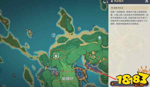 1.玩家登录并进入游戏后,打开地图,找到稻妻地区该位置的传送锚点,点击传送
