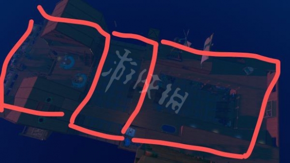 备份好了,开始拆船,先来个俯瞰视角。标准的长方形,前中后三段。因为这游戏火柴盒地基的船也可以改造成水上小镇一样的,我就没追求搞个豪华游轮之类的。