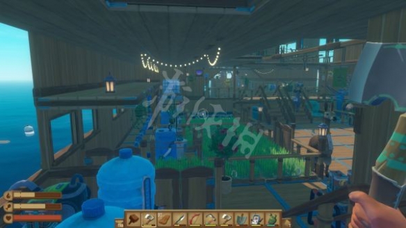 水管和油管冲突的时候就只能走2楼了。我的植物灌溉没设计好,在船的右侧。只能油管给水管让路,水管接灌溉机了