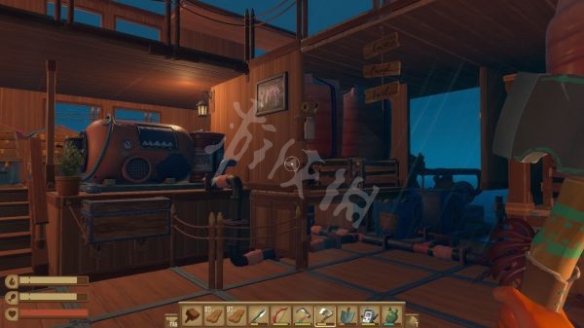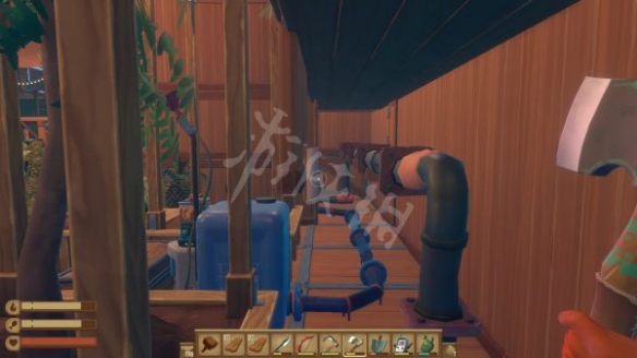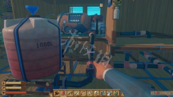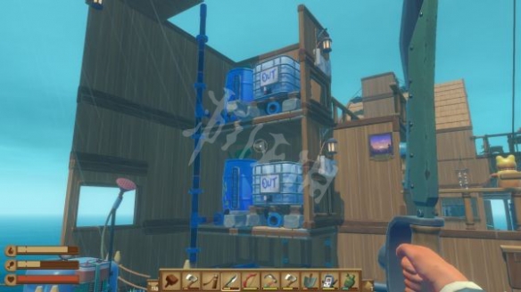 新人要知道游戏中后期的两种管道:水管、油管。油管能连接引擎和电池充电桩,分别能够驱动船、给电池充电,很重要;水管比较简单,让你的船前中后部分都能放上水箱,不至于快渴死了还要去找水箱的位置。