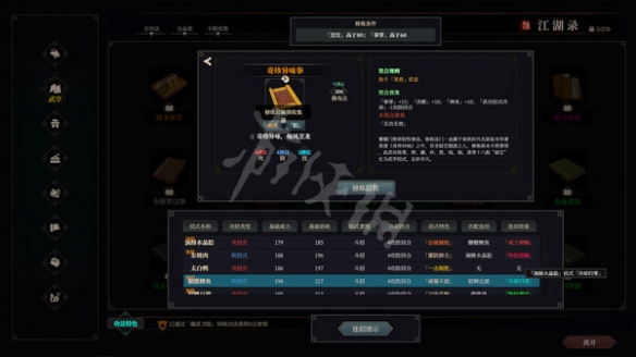 8、武学别乱学,参悟点不够的,尽量学给武功,腰马和督脉或者任脉高的,性价比高,后期基本就是用功法换参悟点了,我甚至有一个猜想,后期可能把基本的功法学完后那些没啥用的全部遗忘然后用30参悟来换一点属性可能性价比更高,但是具体不清楚我还没做过实验。