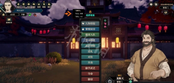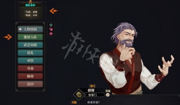 可组队的NPC会显示【组队条件】。满足【组队条件】后便可邀请NPC入队,一同在江湖世界冒险。