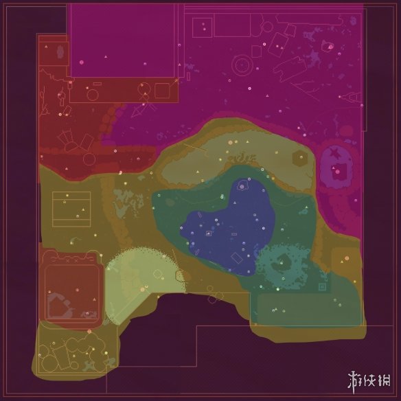 3.黄色部分,算是二级区域。其中偏左下有一个颜色不一样的2/3圆(原地图就有)是雾霭区,包括附近区域需要戴防毒面具。