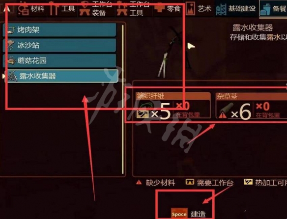 4.准备制作材料,点击【建造】,即可解锁【二级工具】。