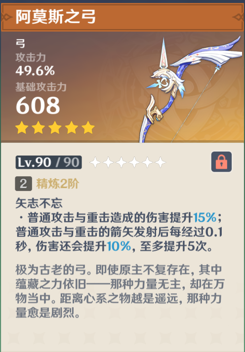 因为香菱挂火需要近身的缘故,阿莫斯这把武器对融甘来说意义就不是很大了。这里首推猎人之径,高暴击的一把武器,就是白值低了些,被动提升元素伤害以及重击伤害(依据精通提升)。