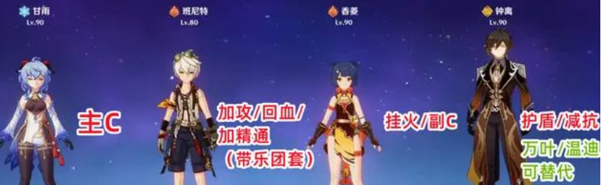但是这个配队在面对高层深渊精英怪较多的情况下比较吃力,但在大世界还算不错,最重要的是这个流派的甘雨不挑武器,平民玩家带西风弓或者祭礼弓都可以,只要充能够高大招持续性够好就行。