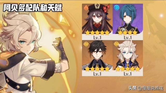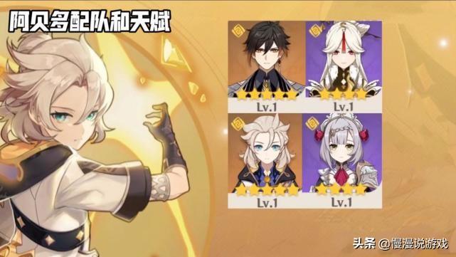 阿贝多是一位岩系副C,不仅伤害可观并且可以给全队提供精通。第一套阵容推荐:胡桃、行秋,钟离和阿贝多。在给胡桃提供精通的同时,凑成双岩的羁绊。
