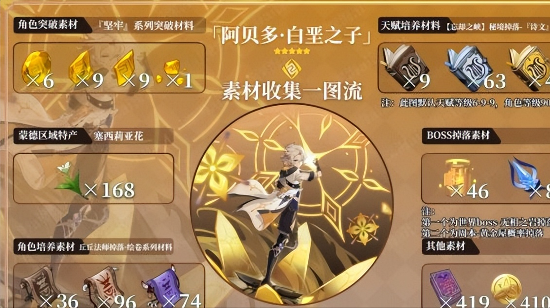 我整理了阿贝多的全部所需材料,并附带路线来带大家获取~
