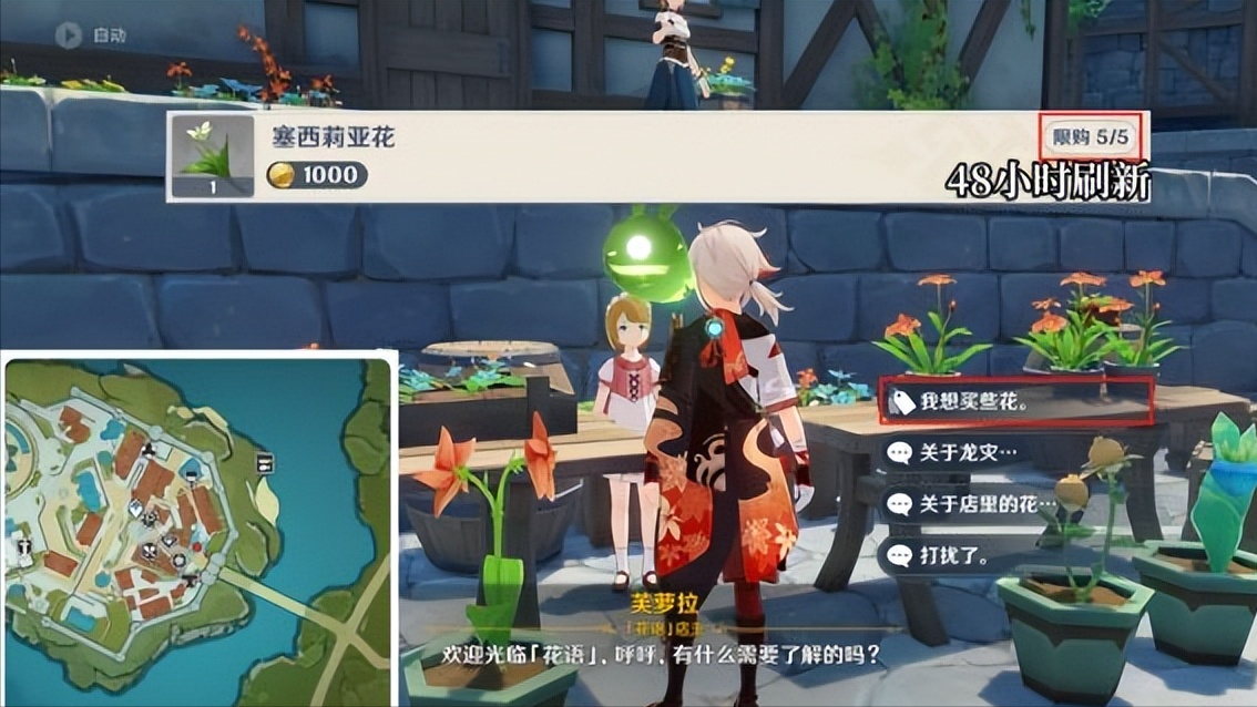 首先可以在蒙德城内的芙罗拉处购买5朵塞西莉亚花