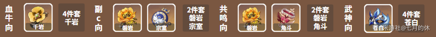 副c向:磐岩+宗室(2+2),15%岩元素加成+元素爆发伤害提升20%。