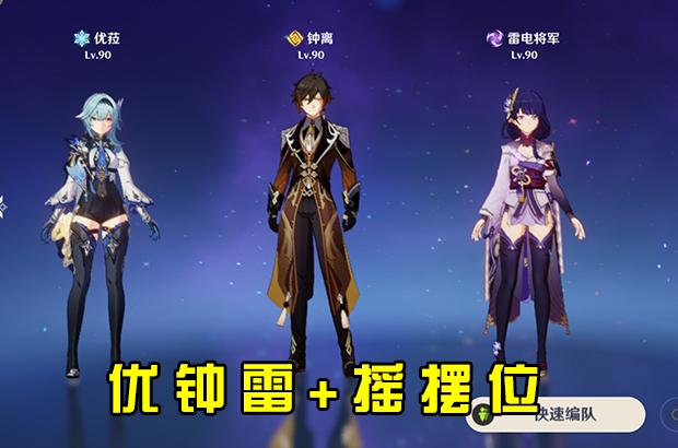 我的阵容(只适合我自己,拿出来参考一下):优菈+钟离+雷电将军+摇摆位