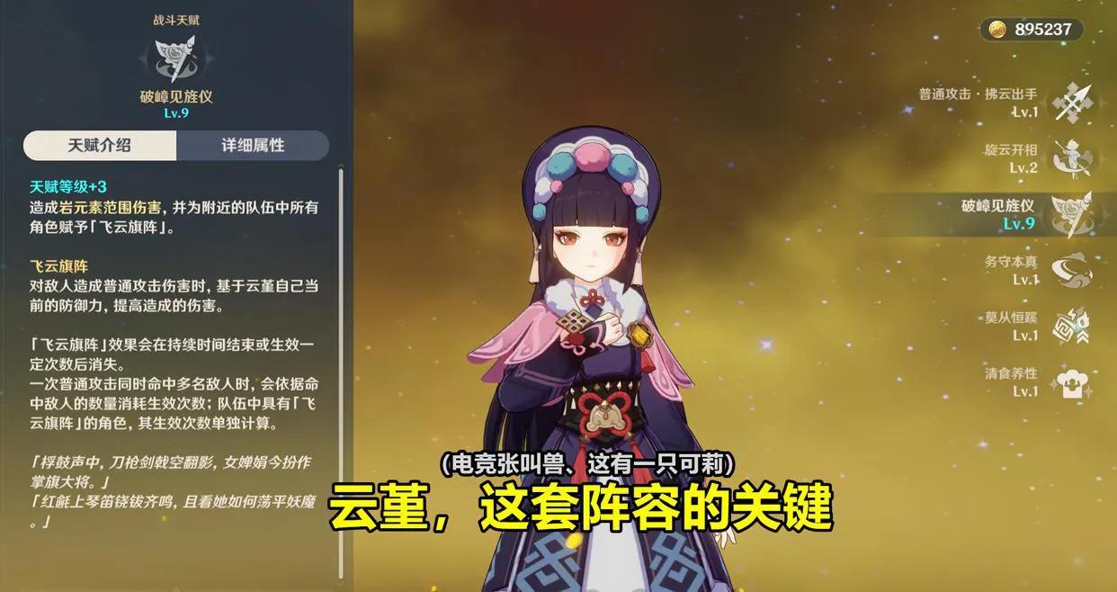 云堇是让这套阵容成型的关键,云堇开启大招后,基于云堇自身的防御力为队友的普攻额外附加固定基础伤害,此伤害可以享受到“伤害加成”。某种程度上,也可以认为阵容的核心是钟离+云堇。