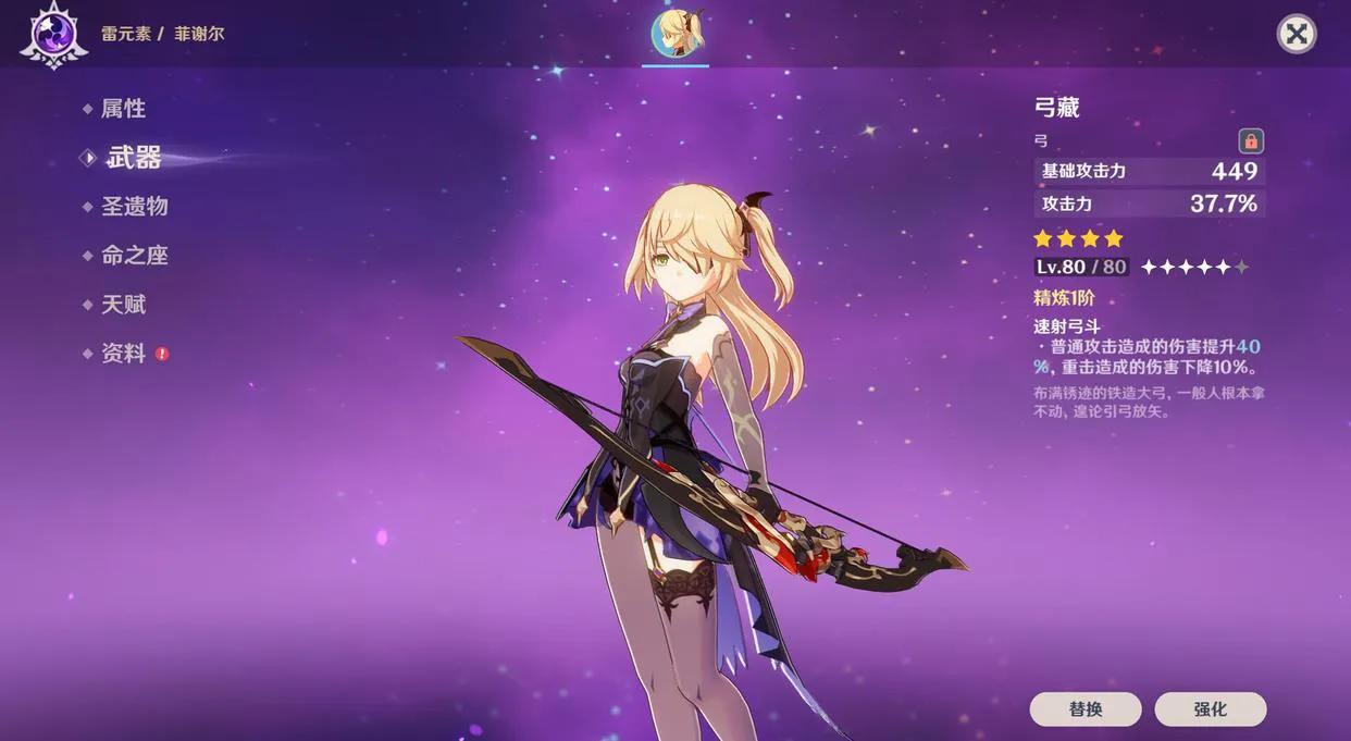 比如:菲谢尔+云堇+七七+钟离,菲谢尔打主C,配备【飞雷弓】、【弓藏】,也能够最大限度发挥云堇优势的阵容。