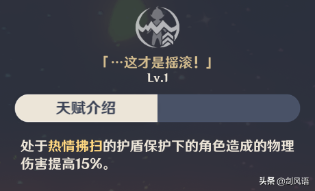3.突破固有天赋【这才是摇滚】,护盾状态下角色提升物理伤害15%。更适合辅助物理主C。