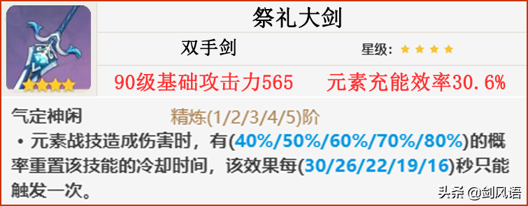 祭礼大剑:辛焱目前的最佳选择,特效能重置E技能提高护盾覆盖率,副属性是元素充能效率可以提高大招使用效率。