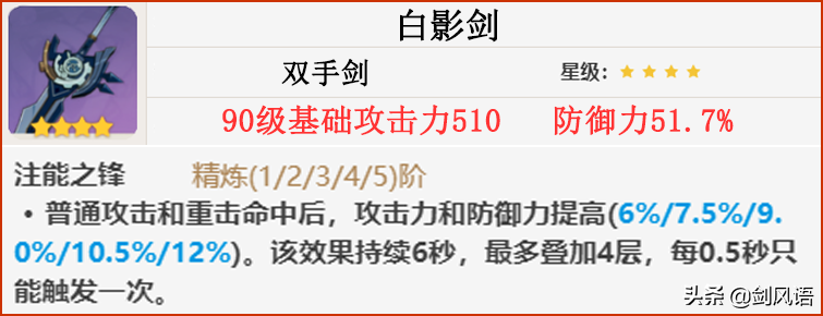 白影剑:副属性是增加防御力,特效也增加防御力,即是增加辛焱护盾厚度。游戏内锻造可以获取,性价比极高。
