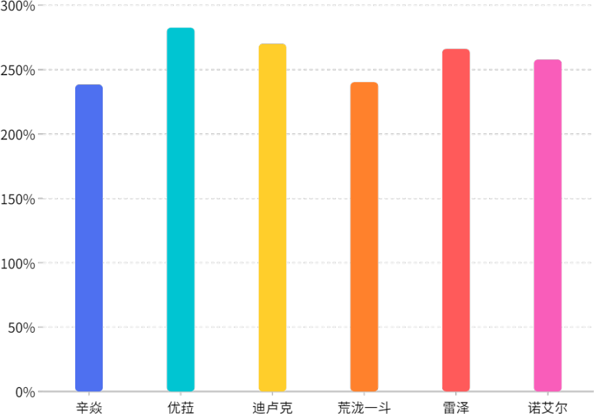 PS:「荒泷一斗」与辛焱类似,主要依赖重击输出,可以看到他的普通攻击秒倍率也是表现不佳——用重击输出的角色,一般情况下,普通攻击秒倍率都不会太高。(比如香菱的普通攻击秒倍率略高于胡桃)