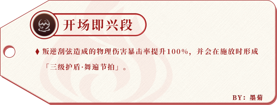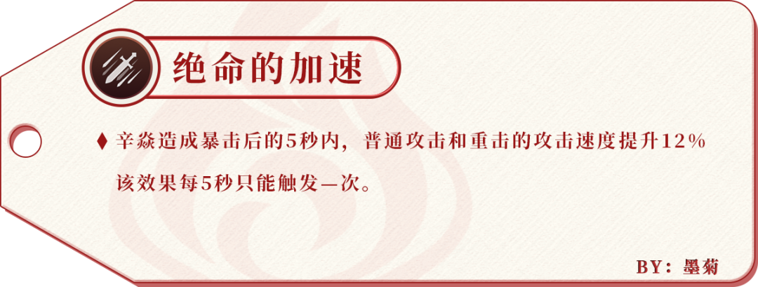 ③.暴击时,增加自身“普通攻击”与“重击”的攻击速度(第一命之座)