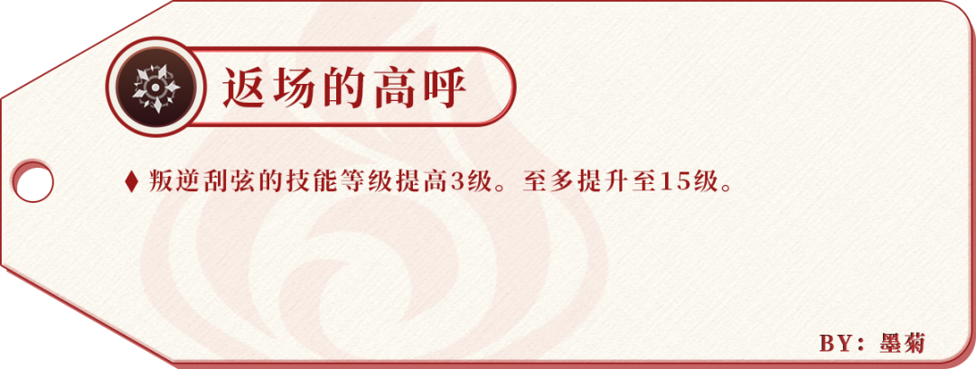 该天赋是『速切物理输出』定位的核心技能,副C辛焱主要依赖它来打出伤害;同样也是『驻场物理输出』定位的一种输出手段。该天赋的其他细节如下: