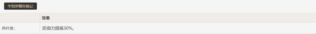 “生之花”和“死之羽”的位置一般选择「守护之心」,其他三个位置其中两个选择「华馆梦醒形骸记」,这样可以花最少的资源获得较高的防御力加成。