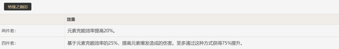 辛焱元素爆发能量需要60点,一般在没有其余火元素角色时充能有较大压力,且作为爆发输出角色,对输出词缀也有一定需求,绝缘二件套效果可以缓解一些充能压力,四件套效果也能有效提高辛焱元素爆发的输出。