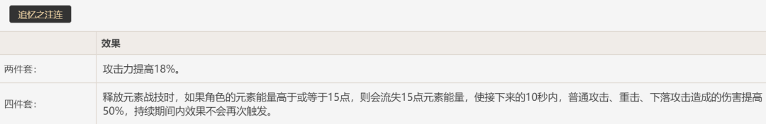 PS:在元素充能为200%时,达到散搭套装的50%加成,但要牺牲很多输出副词缀,不必强求。