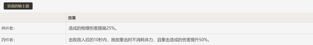 该套装四件套效果对辛焱来说十分诱人,可惜需要击杀一名敌人才能触发,对群时才有启动的说法,对单时根本无法启动...是一个比较尴尬的效果,使用环境太局限,有较好副词缀且环境适合的情况下可以佩戴。