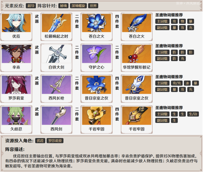 『速切物理输出』定位上只要能兼顾到充能,基本上都可以塞进队伍里——