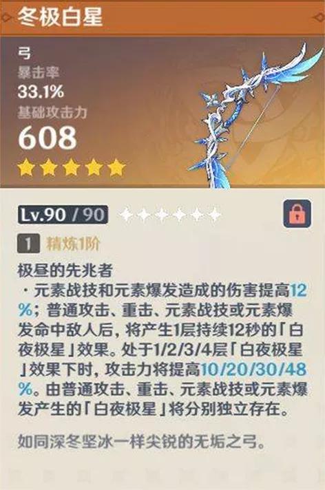 在众多以弓箭为武器的角色中,达达利亚由于其独特的元素战技机制,可以完美的享受冬极白星的武器被动效果。冬极白星相较于飞雷之弦振的优势所在即为冬极白星被动效果是元素战技、元素爆发伤害提升及攻击力提升。这些属性是可以作用在各种断流效果上〈(断流斩/爆),断流的伤害可能经常会被忽视,但却在达达利亚的总输出中占有不小的比例,因此可以称冬极白星为达达利亚的毕业武器。