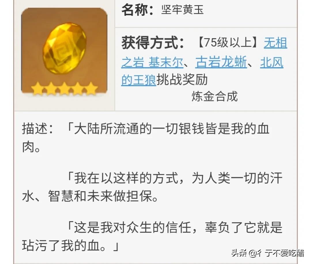 在突破材料『坚牢黄玉』的描述中我们可以看到这样的话
