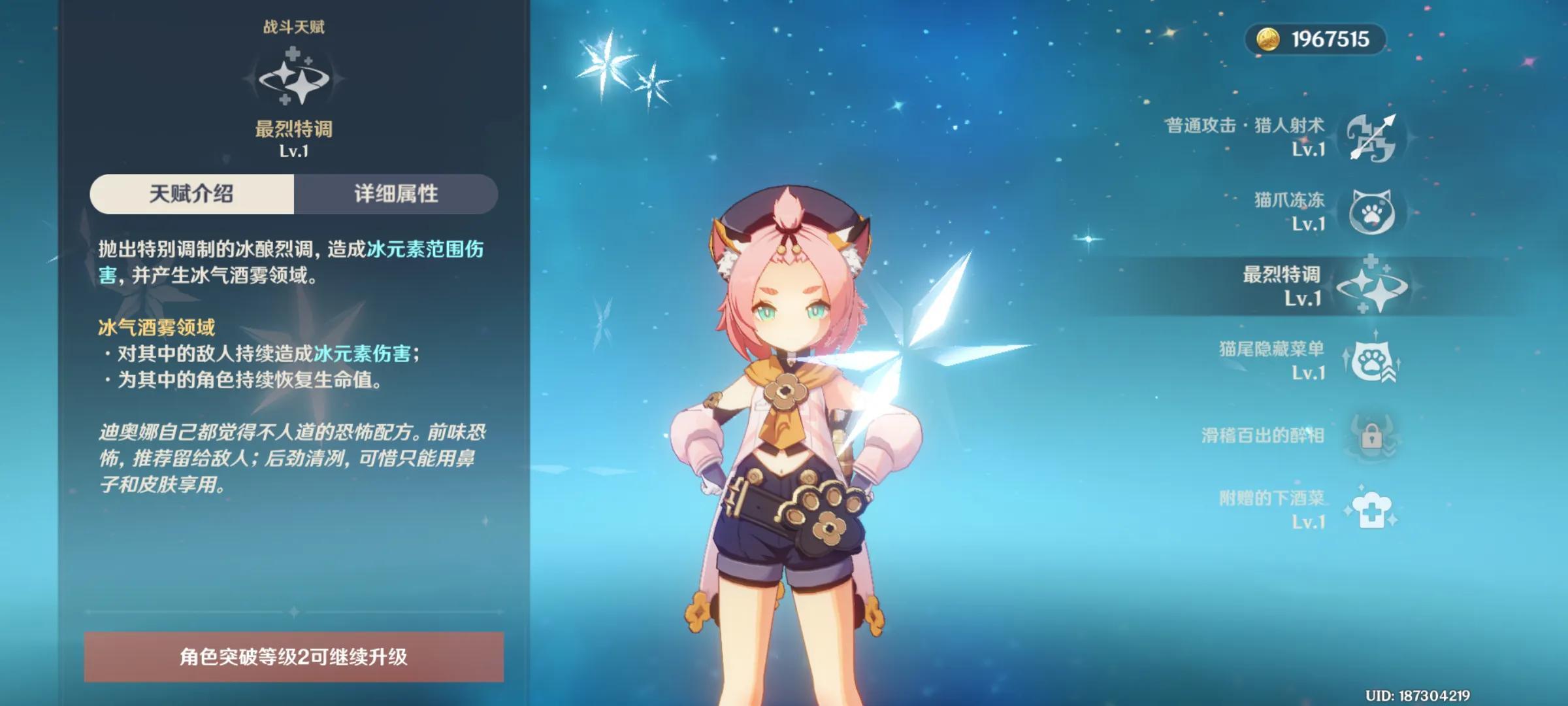 原神猫猫就是迪奥娜了,她是蒙德的一名调酒师,也是原神当前四大萝莉之一,那么她该如何养成呢?