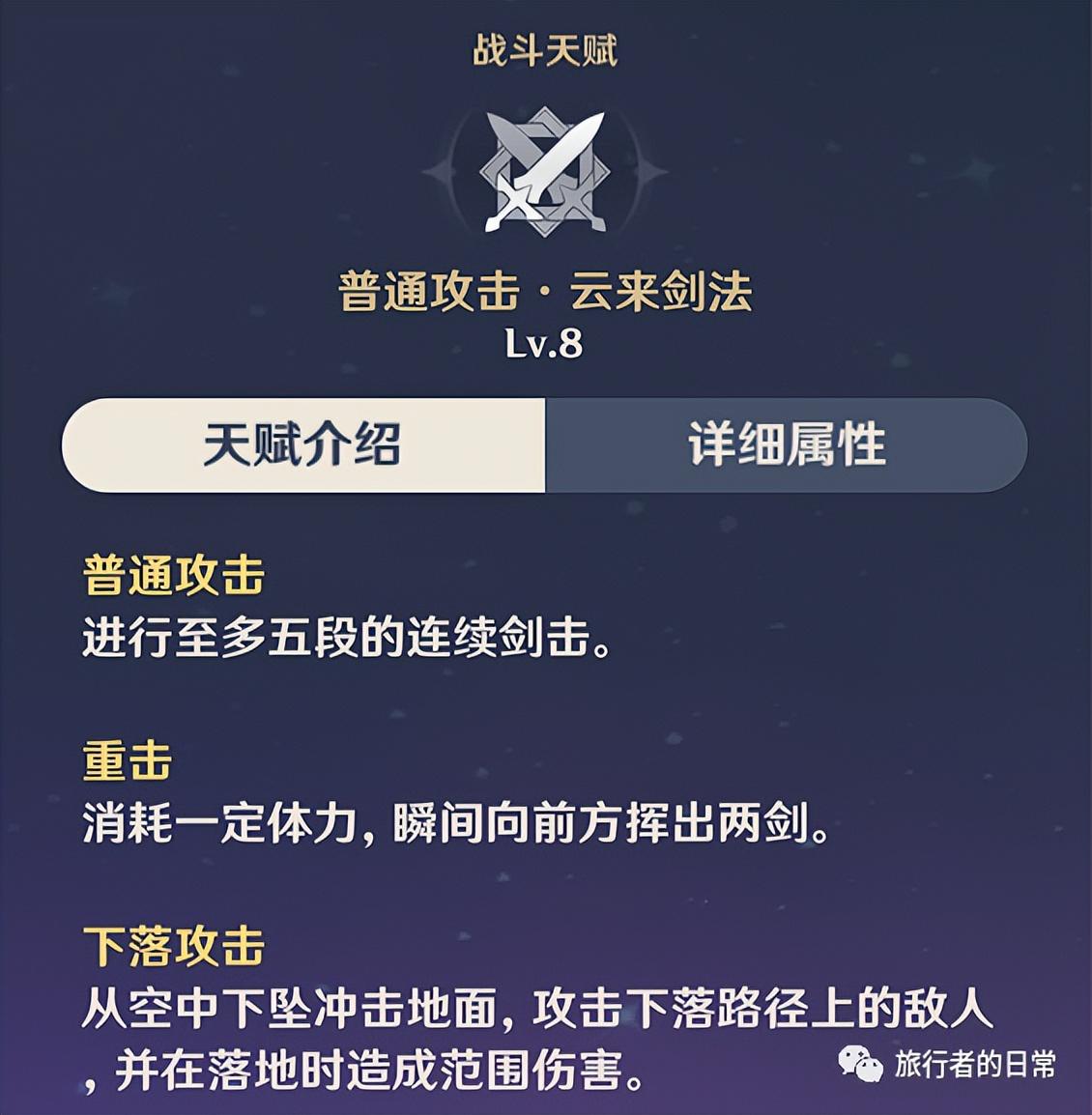 刻晴的普通攻击和其他单手剑角色没有什么区别,都为五段物理伤害,而重击每一下则是2段物理伤害