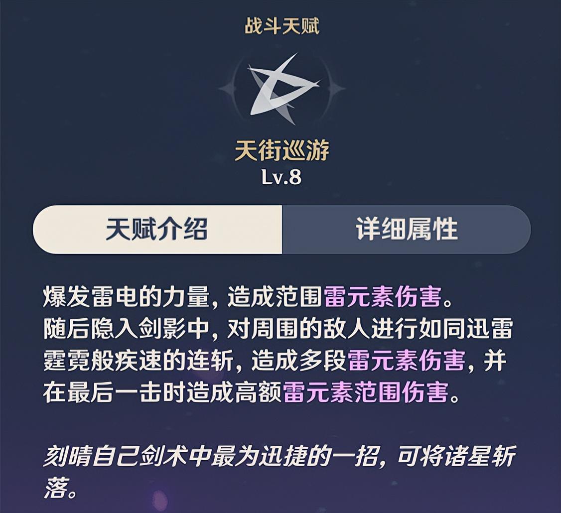 但结合固有天赋1,刻晴释放元素战技后的5秒内,能获得雷元素附魔,将普攻转化为雷元素伤害,所以刻晴通常会在技能间隙,穿插重击补充伤害,需要注意的是,刻晴的重击需要消耗体力,实战中请务必记住体力管理,不要无脑连续重击,这个技能推荐点到9级