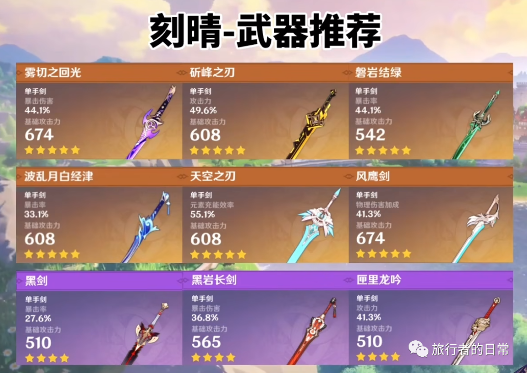雾切之回光>斫峰之刃/磐岩结绿/波乱月白经津>天空之刃/风鹰剑>黑剑>黑岩长剑>匣里龙吟